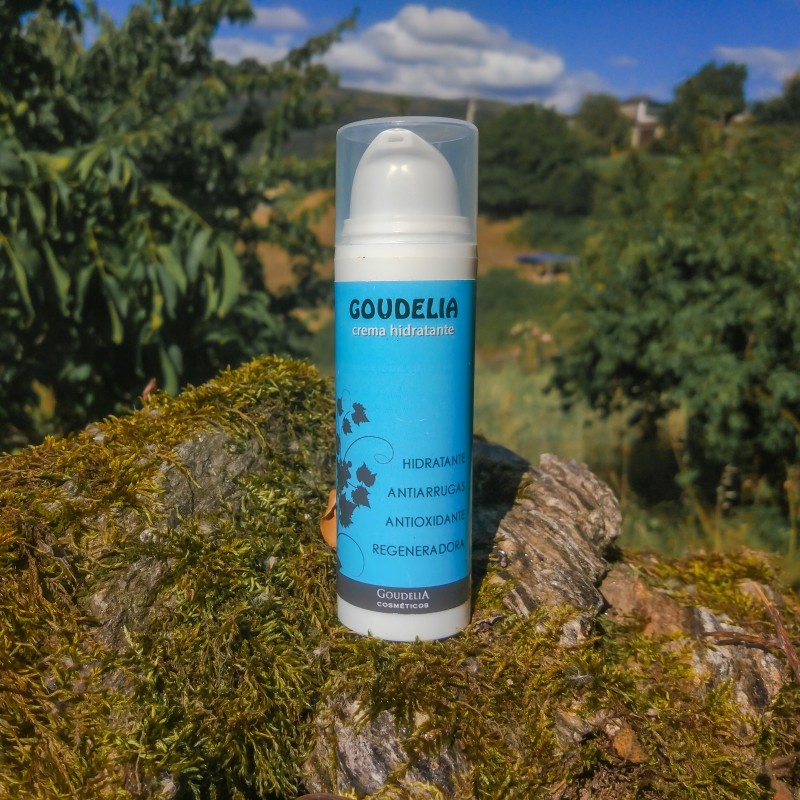 La hoja de Godello, la variedad de hoja de vid más importante de la comarca de Valdeorras, con la que se elaboran los vinos blancos de más calidad del mundo, caracteriza esta extraordinaria crema hidratante fluida para el rostro.