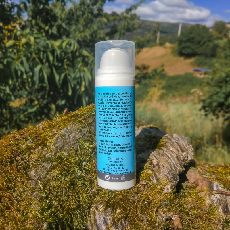 Composición | Extracto de hoja de godello, vitamina E, aceite de argán, glicerina, dexpantenol, ácido hialurónico, base de crema fría natural y perfume |